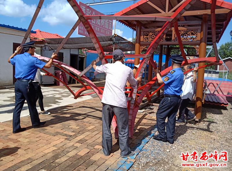 7月24日,温泉镇联合区城管执法局对兰州东路彩钢瓦加工点违规占道经营现象进行了集中整治,进一步推进文明城市创建工作。