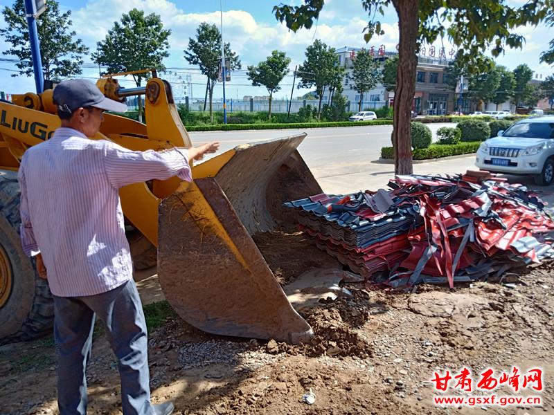 使用机械清运彩钢瓦加工点外围废品